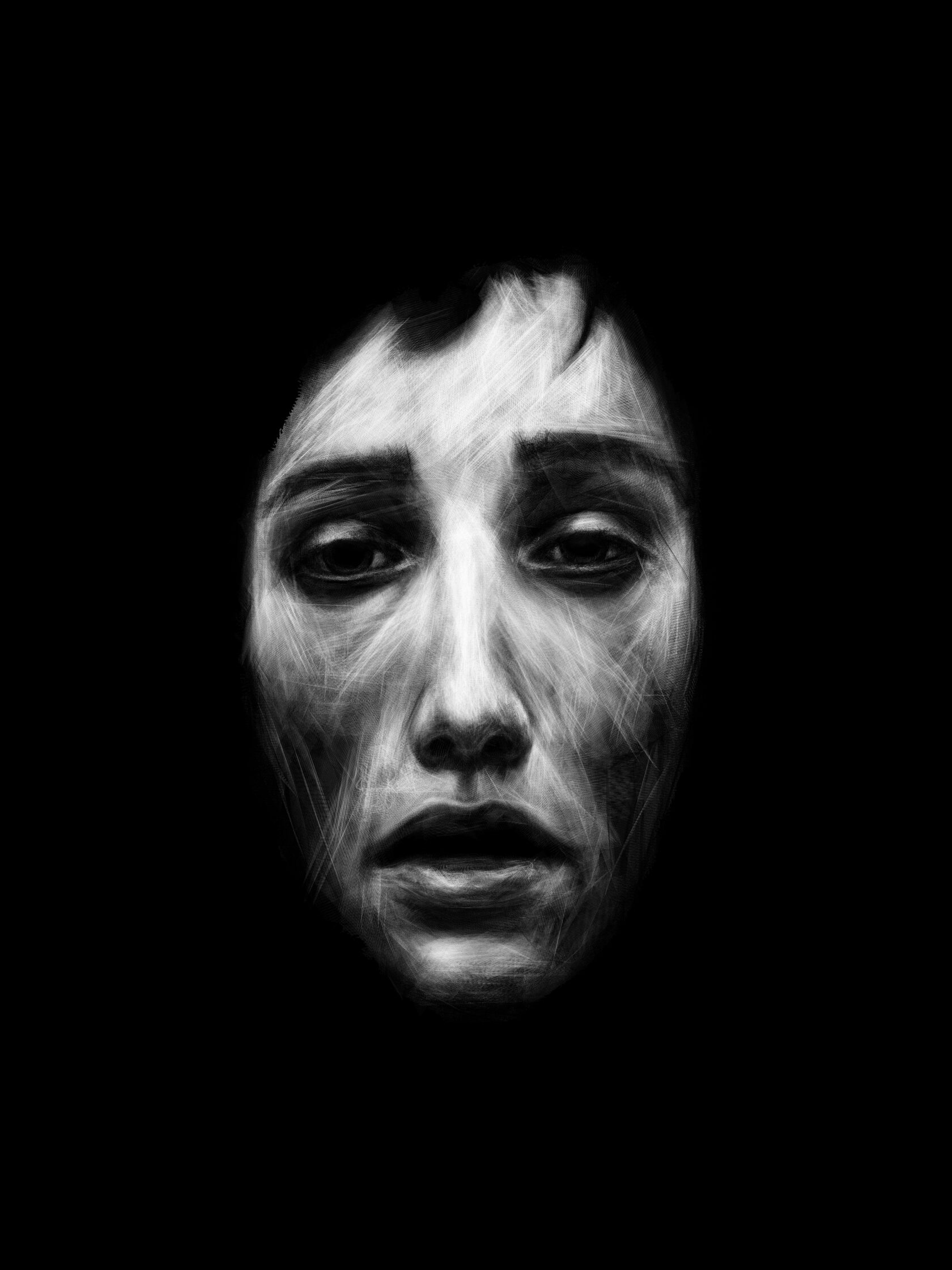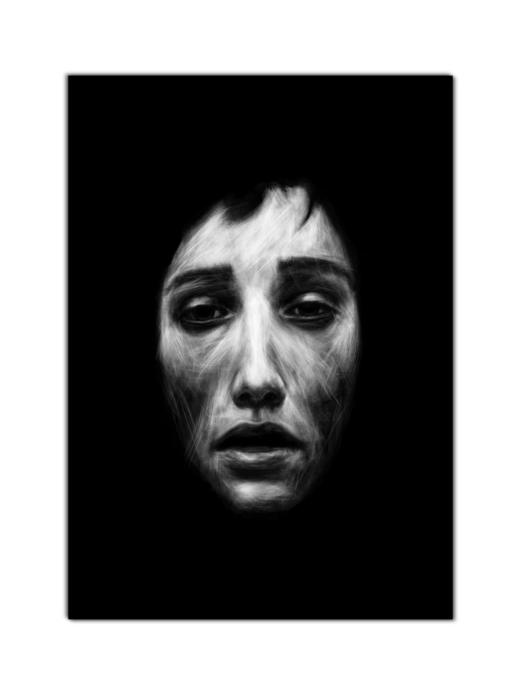 "Эхо тишины" — светлое лицо проступает из тьмы, оставляя своё тихое эхо внутри нас. Работа о хрупкой силе, внутренней глубине и том, что самое громкое порой звучит без слов.